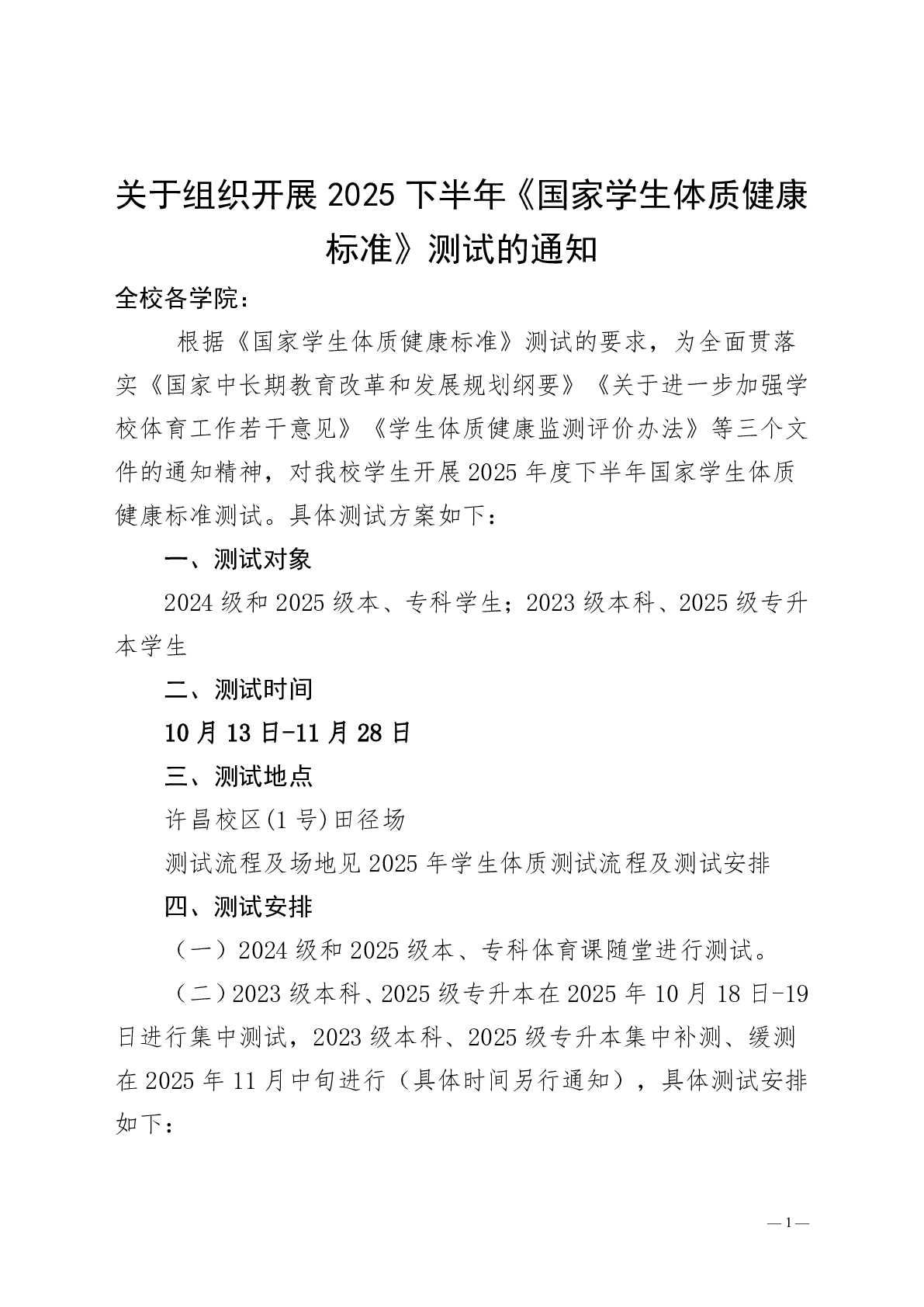 关于组织开展2025年《国家学生体质健康标准》测试的通知