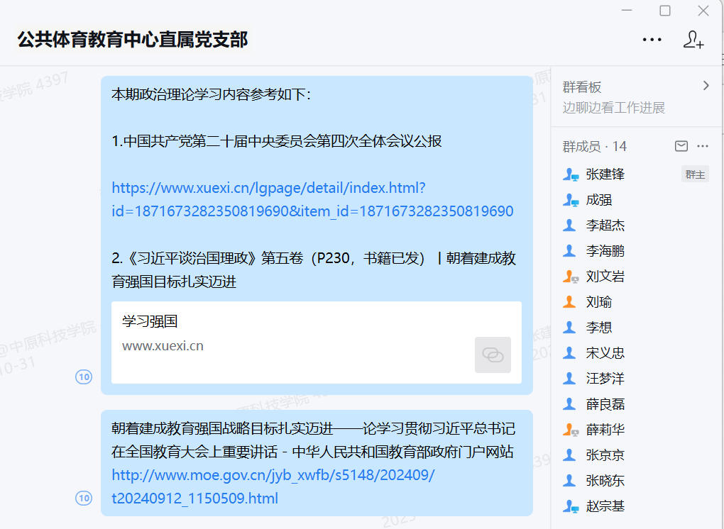 党支部提前在企业微信学习群里发布学习资料、平台链接以及具体学习要求,方便党员教师们提前做好学习准备。在学习过程中,大家依据自身时间灵活安排,认真开展学习。学习结束后,党员教师们分享个人学习心得与体会。