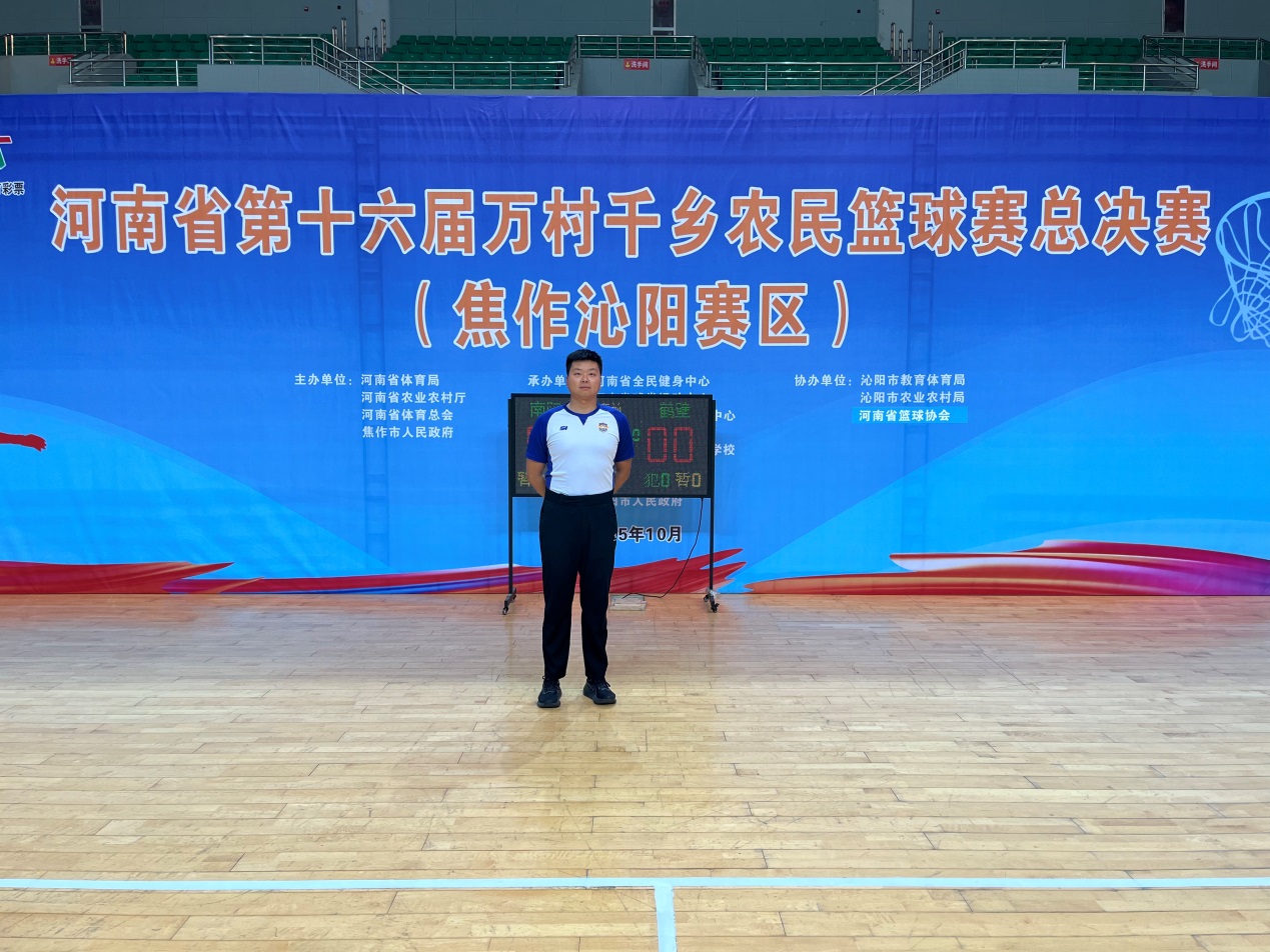 近日,河南省全民健身中心第十六届万村千乡农民篮球赛总决赛在焦作市沁阳市火热开赛。作为河南省群众体育领域的重要赛事,本次总决赛不仅是展现乡村体育活力、推动全民健身事业发展的关键平台,更汇聚了全省各地优秀的体育专业人才。我校公共体育教育教学中心古盼辰老师凭借扎实的专业功底、丰富的执裁经验,受邀担任本次总决赛焦作沁阳赛区技术官员,以专业能力为赛事保驾护航,充分展现了我校体育教育工作者的专业素养与社会服务担当。