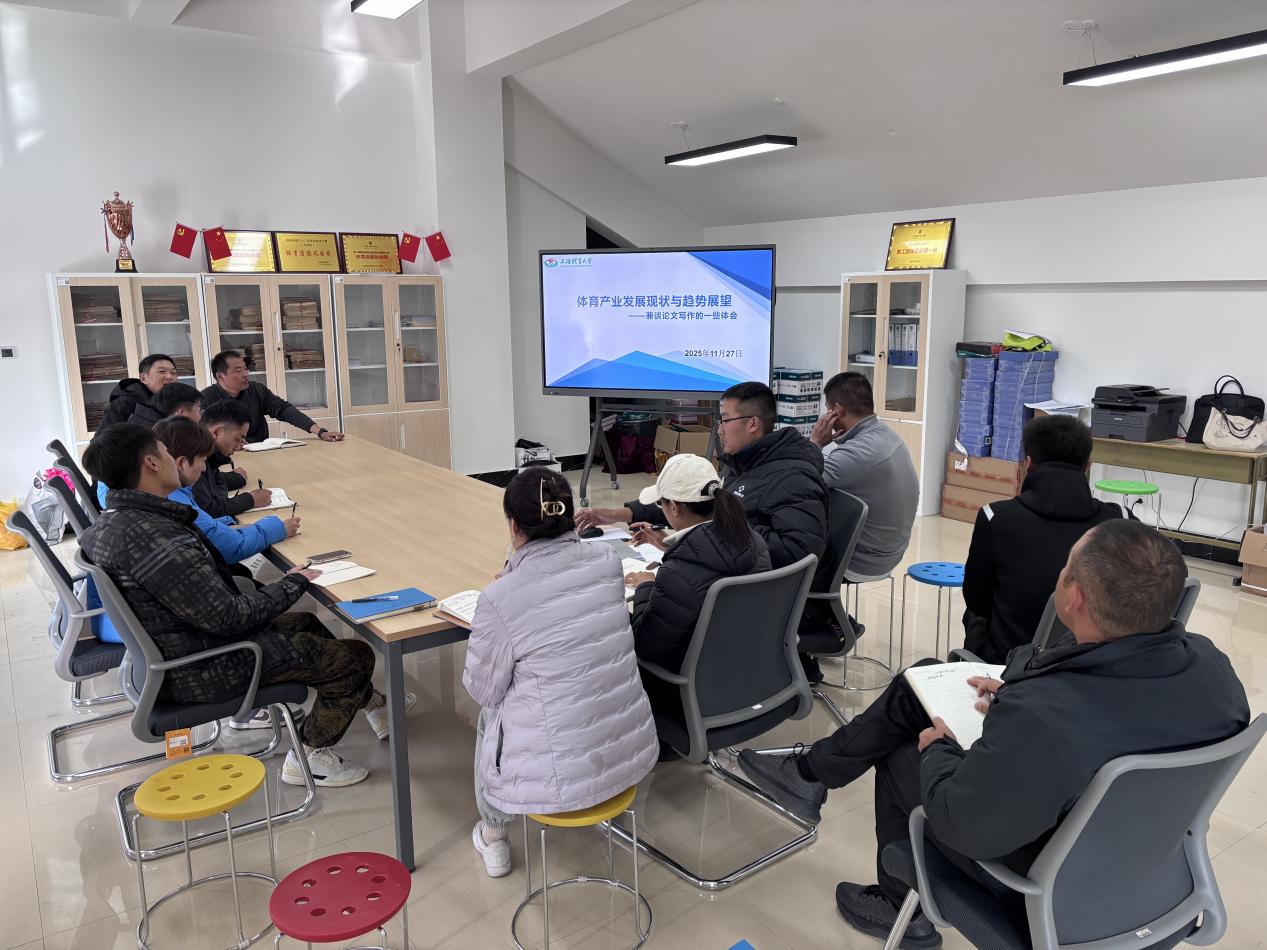 2025年11月27日下午,公共体育教育教学中心科研系列讲座第三讲在许昌校区二号体育场办公室成功举办。本次讲座以“体育产业发展现状与趋势展望”为主题,并分享了论文写作的宝贵经验,旨在提升中心教师的科研写作与投稿能力。