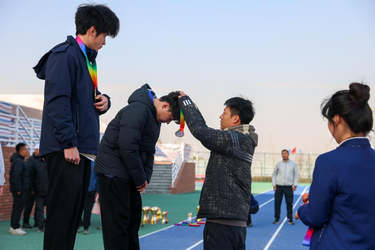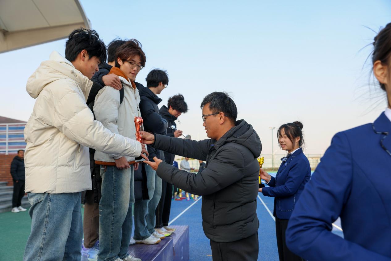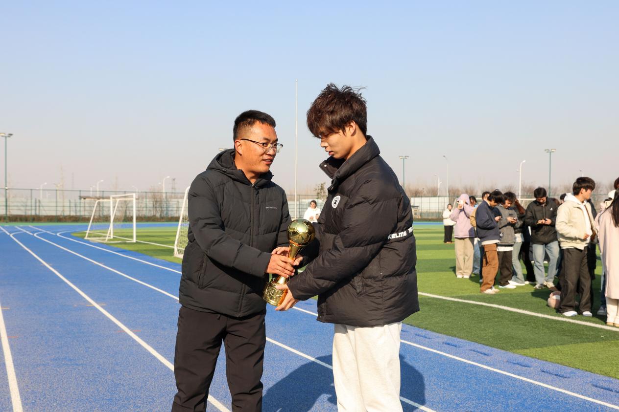 图五、足球裁判长李佳星为足球男子前三名颁奖