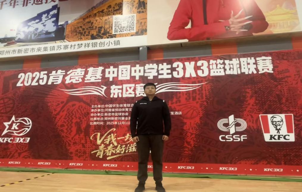 冬日新密,篮球燃情。12 月 13 日,2025 肯德基中国中学生 3×3 篮球联赛东区赛在新密市刘寨镇全民健身文体活动中心圆满落幕。中原科技学院公共体育教育教学中心古盼辰老师受邀担任本次赛事技术官员,以专业精准的执裁圆满完成赛事保障任务。这是该校教师首次亮相全国性 3×3 篮球联赛高级别赛事执裁工作,成功实现学校在该领域全国赛零的突破,彰显了高校体育教育工作者服务社会体育事业的过硬实力。
